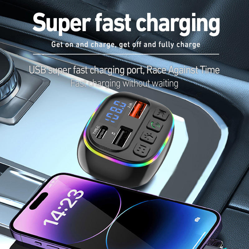 Transmetteur FM Bluetooth C22P 3-en-1 20W : Chargeur Rapide Multi-Câbles, Lecteur MP3 et LED Rainbow pour Voiture